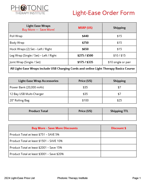 Light Ease Wraps Order Form – 2024